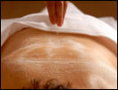 skin is exfoliated with a dry brush and then the body is wrapped with hot towels that have been steeped in